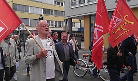 In der Metall- und Elektroindustrie endete die Friedenspflicht. Kein Wunder, dass die Rede des 2. Vorsitzenden der IG Metall, Detlev Wetzel auf der Maifeier, zu der Gewerkchaften, SPD und die Stadt Singen eingeladen haben, im Zeichen der bevorstehenden Tarifauseinandersetzungen stand.